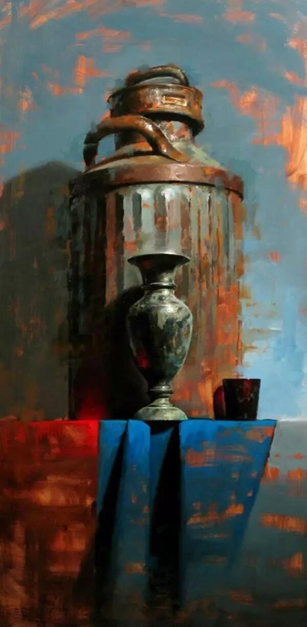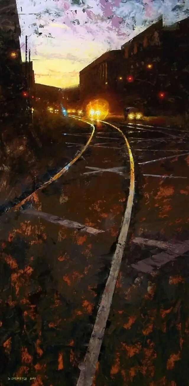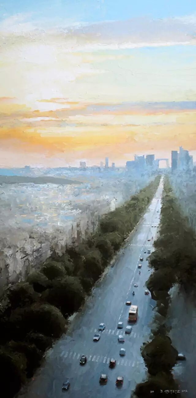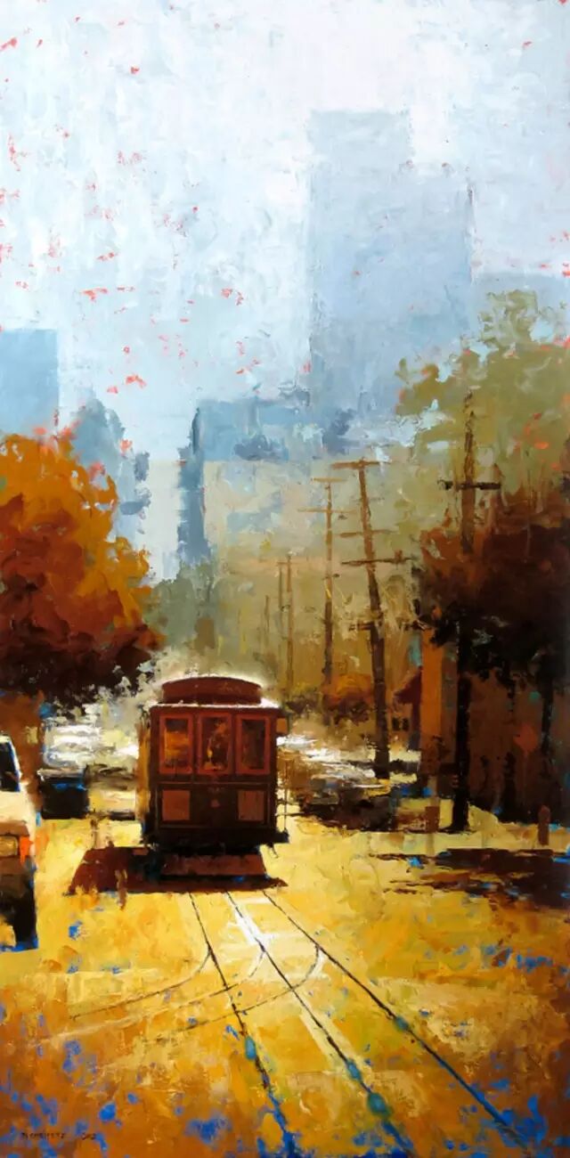 他的作品非常讲究光线,主体突出。用厚重的颜色、细腻的笔触和丰富的色彩深入勾画出环境的氛围。粗放和细腻结合,很强的视觉冲击力。