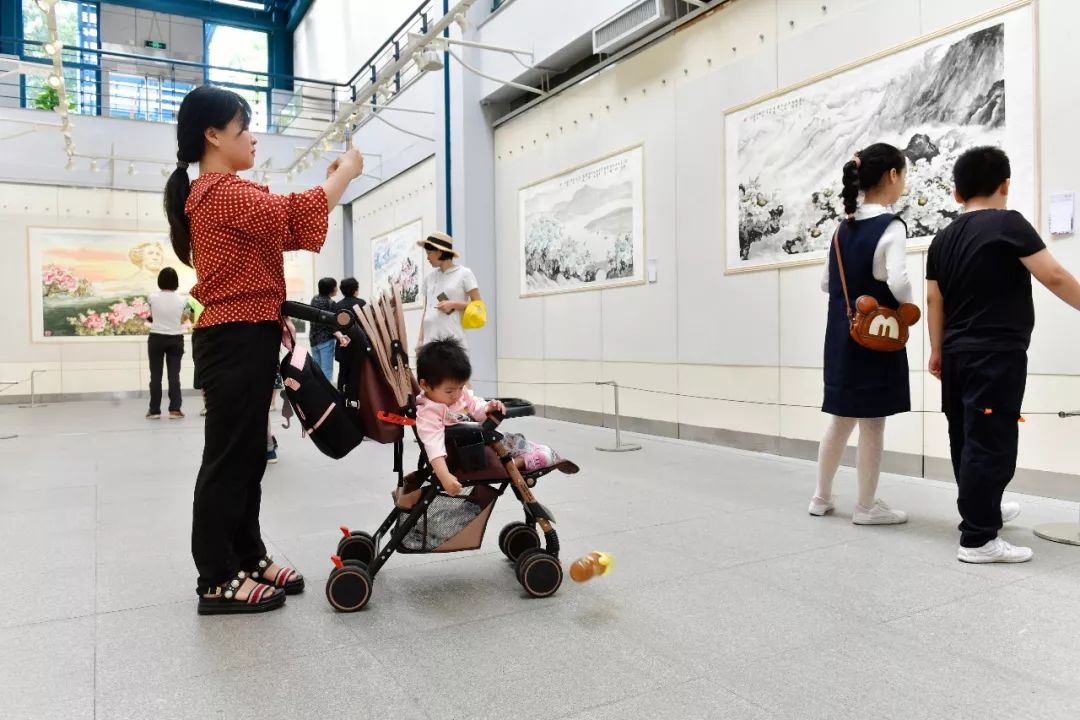 开幕式当日众多国画爱好者来到美术馆参观还吸引不少家长带小孩来感受不一般的“艺术气氛”