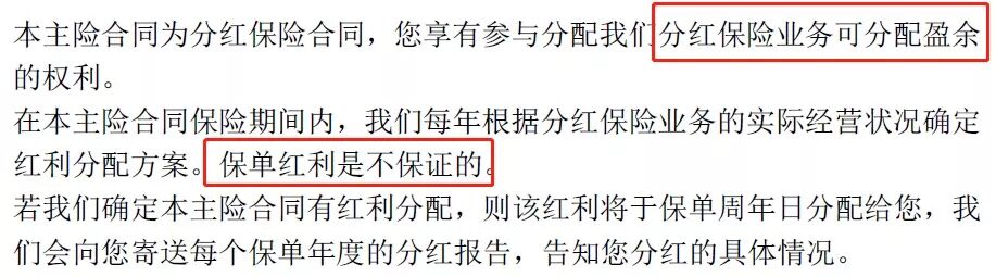 假如保险公司整体是赚钱的,但是分红业务亏了,那你一样没有红利可以拿。并且最重要的是,红利是不保证的,连保底收益都没有。所以实际红利有没有,有多少钱,基本全看保险公司“心情”了。