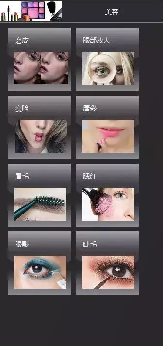 人物美容包括磨皮、眼部放大、瘦脸、眉毛、腮红、眼影、睫毛。