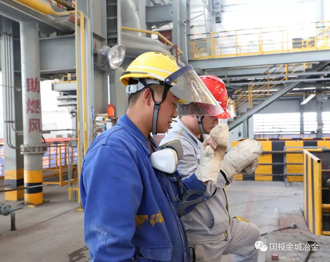 此时,偌大的阳极炉车间,戴着安全帽的孙春龙按照岗位职责要求,工作一丝不苟,神情专注、认真。