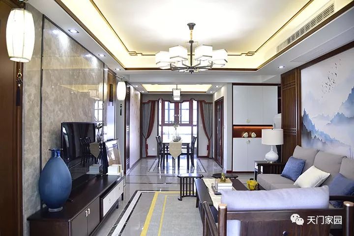 F1户型全局以端庄丰华的中式风格为主,体现品质生活格调及设计内涵,清新淡雅的水墨画与搭配得宜的墙面给人舒适的感觉,配合古色古香的灯具,营造出温馨之家的氛围,不禁让人心情舒展,进门就能感受到家的美好。