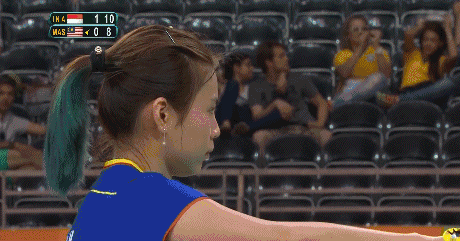 遇到这种情况,先深呼吸,观察接发球人,发球时不要犹豫要对自己的发球质量有信心。
