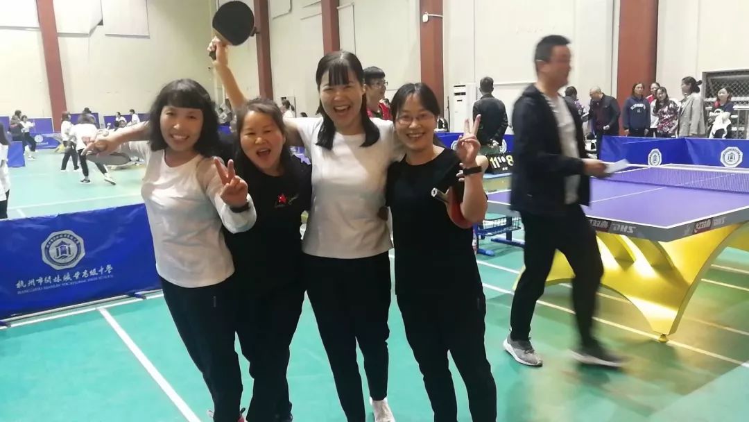 早在今年5月,我校四名女教师团队在余杭区教育工会西部女子乒乓球比赛中,以小组第一出线,经过长达五个月的紧张练习和筹备,终于在余杭区决赛中克服种种困难,所向披靡,一展芳华,以卓越的成绩夺得团体第一名的好成绩。这种团结协作的意识、不懈努力的意志和顽强拼搏的品质,正是二中精神的体现,也展现了二中教师团队的良好精神风貌。可喜可贺!