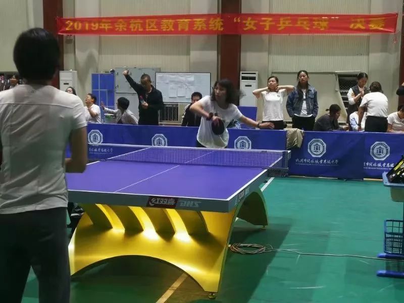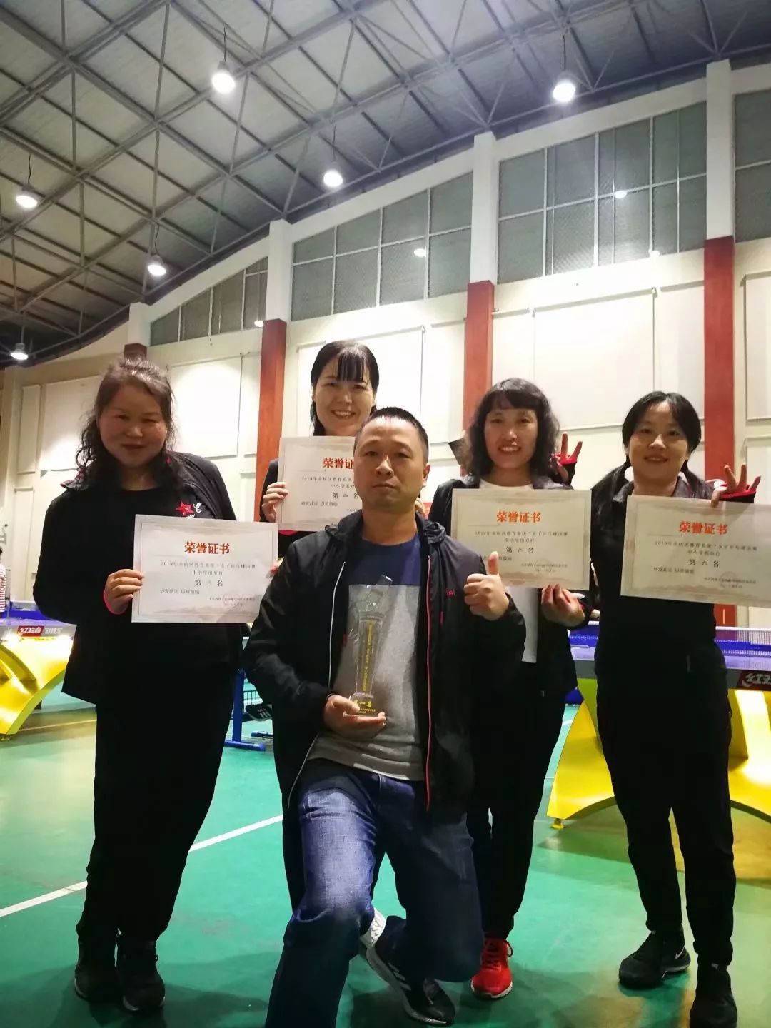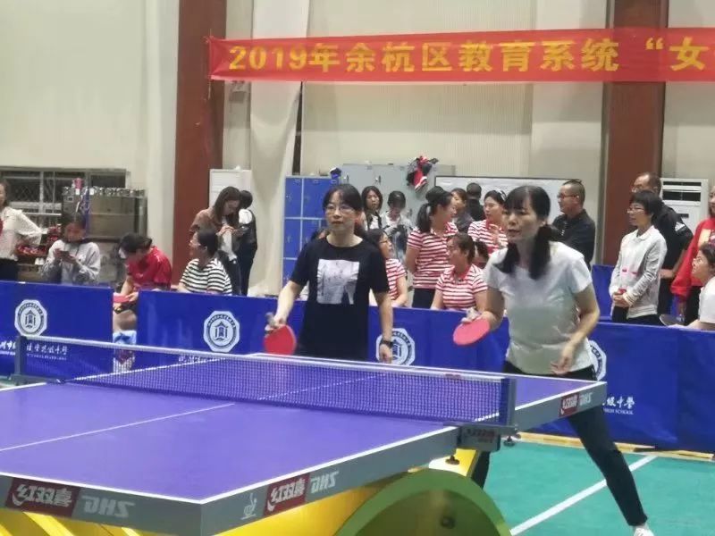 2019年10月18日晚11:59,余杭区教育系统女子乒乓球决赛结束。我校方新霞、董爱伟、张春焕、王晓红等四位女老师组成的代表队,由工会姜国明老师带队,经过为期两天的激烈角逐,获得团体第一名。其中方新霞、王晓红老师获双打亚军;董爱伟、张春焕老师获双打第六名;董爱伟老师获单打第六名!