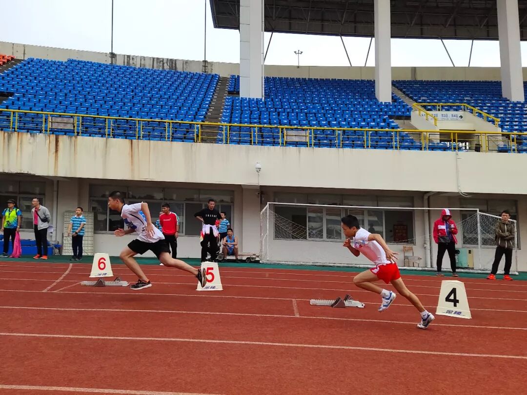 扎实训练,顽强作风,是我校的体育精神。比赛的第二天,天空下起小雨,气温下降到十几度,运动员们仍然能够克服困难,出色完成比赛。最终我校比赛积分达到101分,拿到团体第三名的好成绩。其中在男子甲组800米比赛中,蒋从文同学以2分38秒打破了七星区原纪录;男子甲组200米刘翔宇第三名,李胡星第五名;男子甲组400米刘翔宇第二名;男子跳高卫霄航第三名;女子跳高廖亚晴第三名,葛子怡第四名;男子跳远李胡星第二名,卫霄航第三名;4×100米男子第二名,女子第三名。除了这些成绩,还有其他运动员们的精彩表现,我校才能拿到团体总分第三名的好成绩。