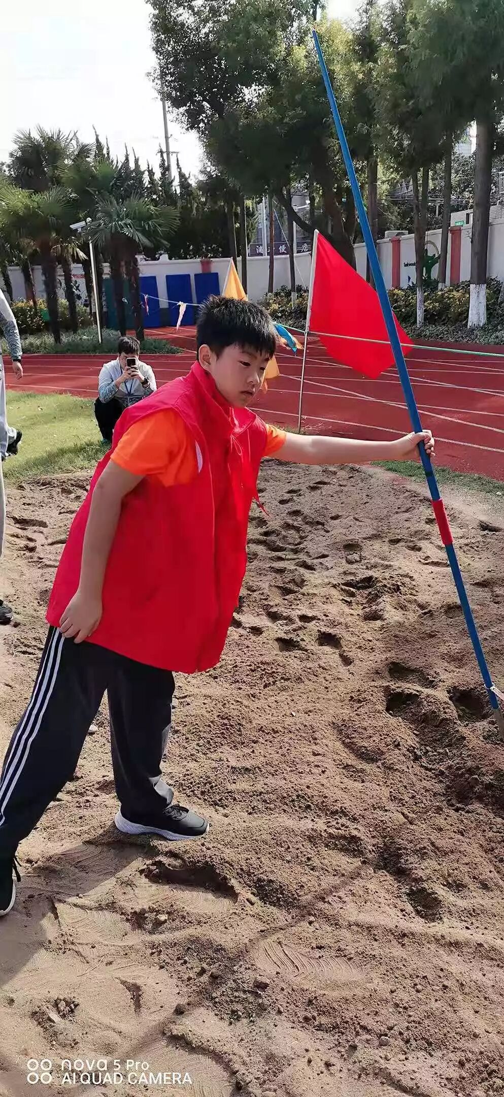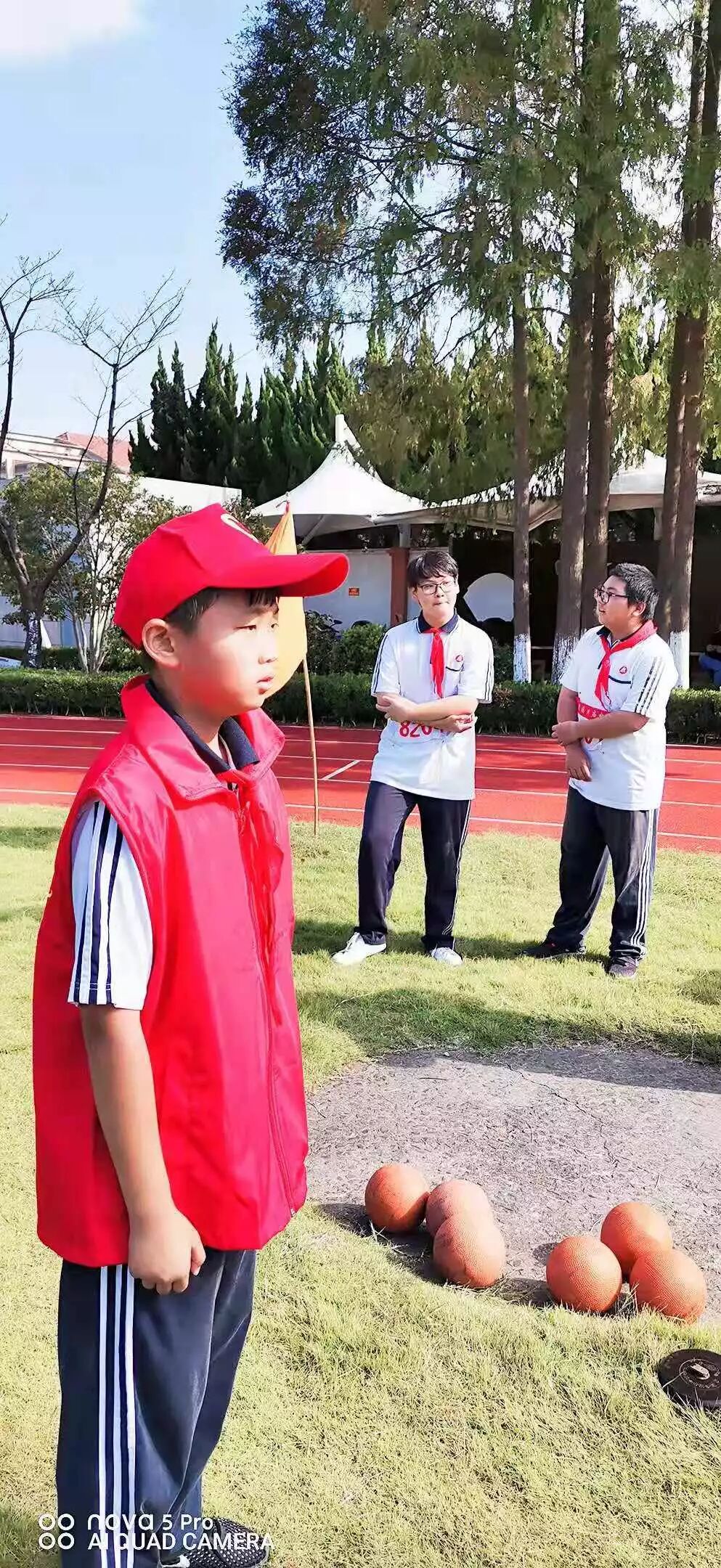 实心球赛场,志愿者们忙得一刻不得空闲:判断落点,捡起球,维持秩序。这份工作除了需要极高的专注力还要耗费不小的体力,但这些小小志愿者丝毫不懈怠,认真负责。