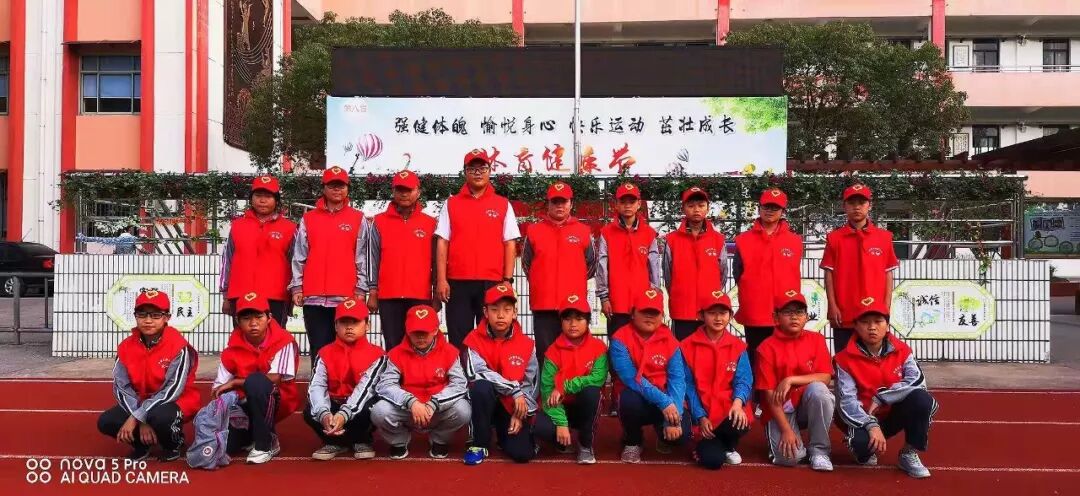 运动场上,他们头戴小红帽,身穿志愿者服装,个个精神抖擞,昂扬向上,以饱满的热情积极参加到运动会赛场上的各项服务活动中,忙碌于运动场的每一个角落。