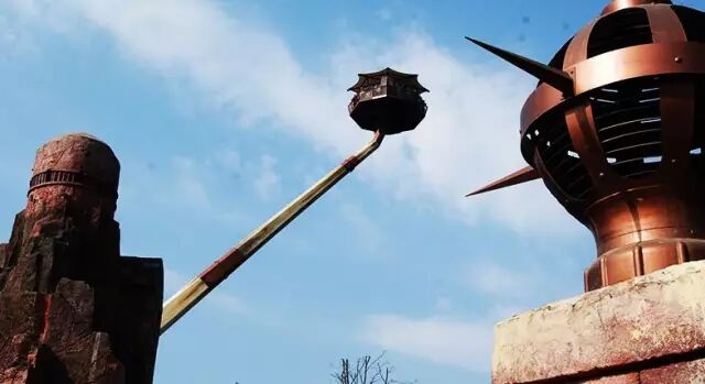 亚洲最大的大摆锤,6台大功率电机一起启动,瞬间将游人抬升至15层楼的高度(要飞上天,和太阳肩并肩,世界等着我去改变),跌落、翻转、转弯、飙升,乘坐其上,仿佛处于失控状态,惊心动魄,心肝出来了,哭爹喊娘的。
