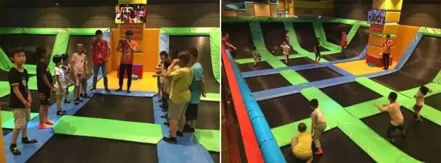 ◆ 分格的蹦床,一个格子一个人跳。这样安全比较有保障