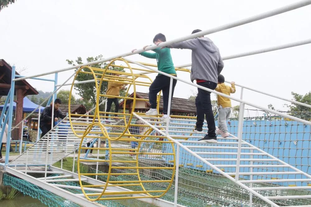 文化园水上拓展项目有30多个,冲滑索道、肋木架、绳网、吊索桥、腹臂斜壁、上撑直臂、滑竿、荡绳、荡木桥、摇摆高低木、软梯、高台滑竿、曲板桥、空中抓网、侧爬网链、浮桥、倒爬杆、滑索等拓展项目,成人可以挑战成勇士,孩子可以挑战做名勇敢的孩子。