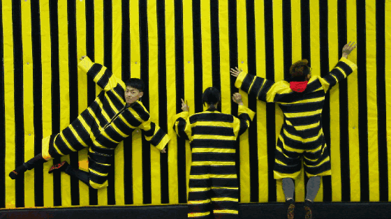 穿上特制服装,像小黄人一样蹦跶蹦跶