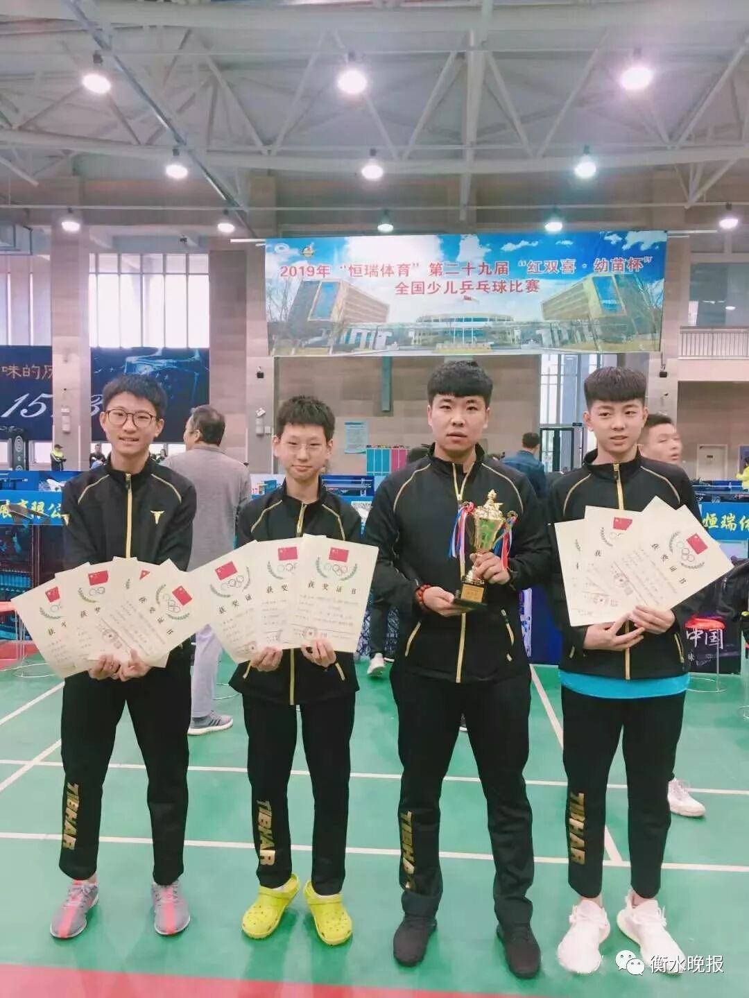 近年来,在黄福杰夫妻俩的努力下,衡水中学及实验学校的乒乓球队都取得了不俗的战绩。在今年8月举行的全国青少年乒乓球巡回赛上,实验学校乒乓球队荣获男子甲组团体冠军。河北省第十五届运动会青少年组乒乓球比赛中,实验学校乒乓球队队员刘政浩荣获男子丙组银牌,佟禹辰荣获男子乙组铜牌。在2019年全国中学生乒乓球锦标赛上,衡水中学乒乓球队获得女子团体第四名,团体总分第十名,运动员唐子尧/陈新元获得男子双打第三名。今年10月,在山东济宁举行的全国少儿乒乓球比赛中,实验学校代表队取得男子一队团体亚军,男子二队团体季军,女子团体一队季军,女子二队第五名的好成绩。