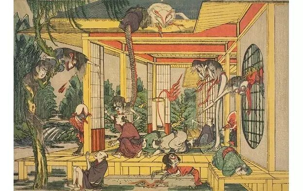 北斋的才能不仅在风景画领域,而且在读本插图、花鸟画,甚至《百物语》这种妖怪画等所有画域都有崭新的表现,还反映在肉笔画中。