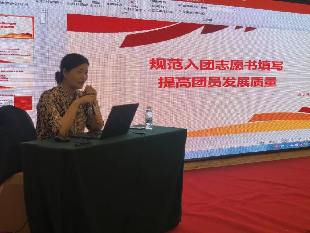 上午,刘老师围绕《规范<入团志愿书>填写,提高团员发展质量》,就为什么要提升团员发展质量、当前团员发展工作的现状、如何规范入团志愿书提高团员发展质量三个方面进行授课。
