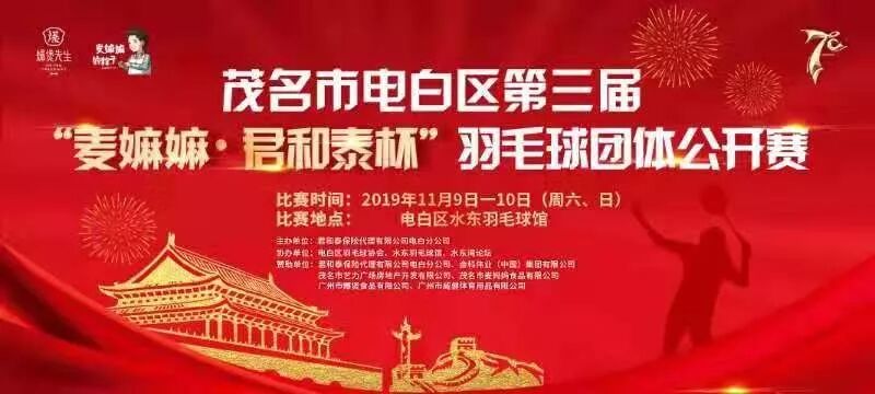 茂名电白区第三届“麦嫲嫲?君和泰杯”羽毛球团体公开赛将在水东羽毛球馆举行!