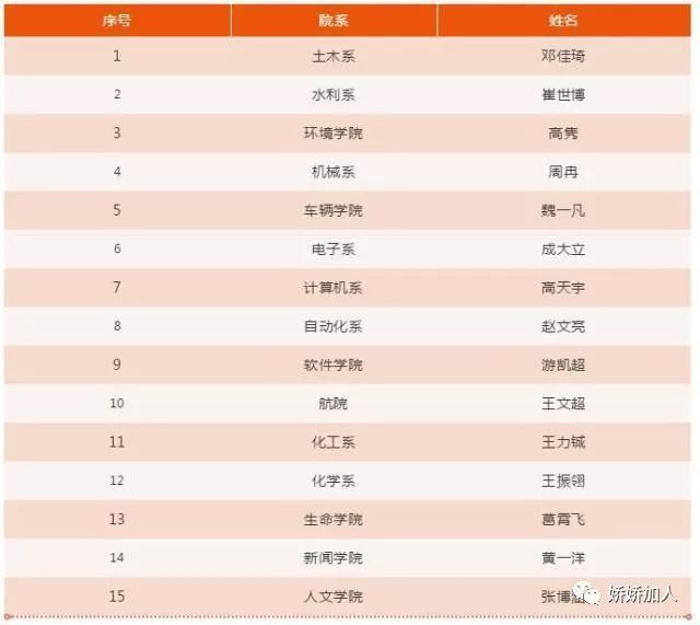 经学生申请、院系资格审查、院系内初评和学校第一轮评选,共15名候选人入围2019年清华大学特等奖学金(本科生)答辩会,他们是: