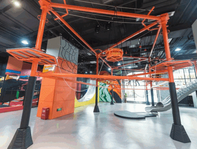 满足Chao多娱乐休闲场景旋转、跳跃、起飞、落地… 一次性get 花式蹦床、网红90°C尖叫滑梯、黏黏墙、海绵秋千、高空扩展