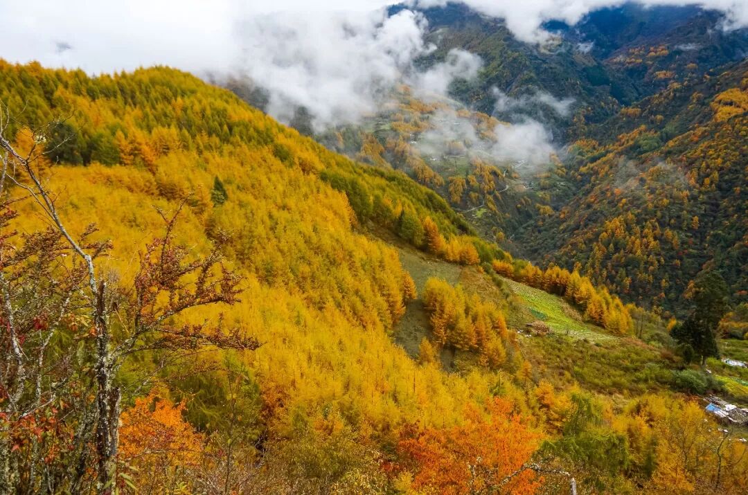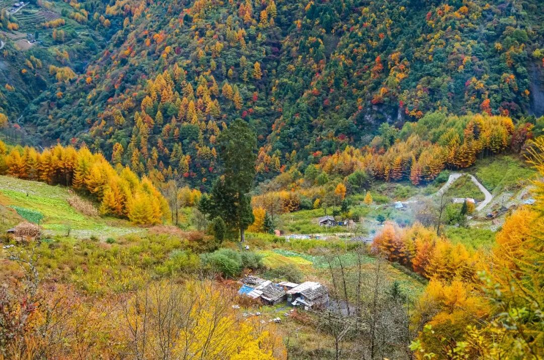 这里没有车龙流水的喧嚣声,只有偶尔的长长的牛叫声,响彻在原生态的彩林间。