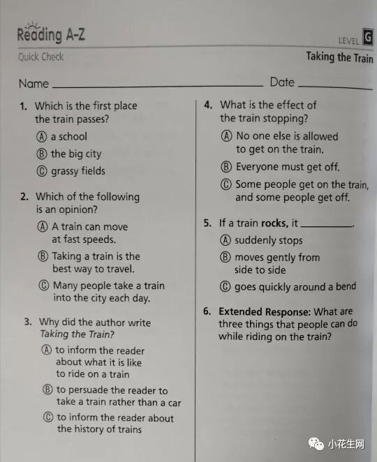这种检验阅读文章是否读懂的方式,在国外研究的很深入,会一直持续到高中毕业的,是精读的基础。对于我们的孩子,早些时候接受这种quiz的训练,对于孩子以后的阅读理解能力是相当有帮助的。