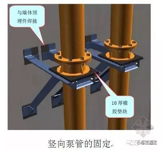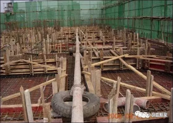 4、 布料机及泵管不得直接搁置在钢筋上。布料机下方用木方铺设,且此部位钢筋骨架要加固,泵管下方用废弃的轮胎铺垫。