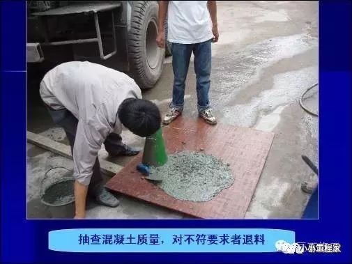 实验员应对混凝土质量进行跟踪检查,随机抽样进行混凝土塌落度及扩散度检验,并做好记录,不符要求的混凝土应退料。