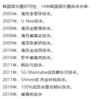 雪莉的离开,又为韩国的娱乐圈注入了一丝阴霾。韩国艺人,俨然也逃不过“地位低,收入低;压力大,自杀率高”的定律, 成为了一份高危职业。