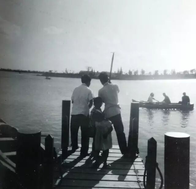 上世纪五十年代游客在水上公园的留影,身后是水上竹亭