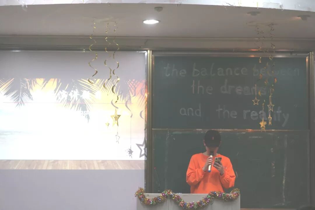 比赛分为两个环节首先进行个人赛,第一个环节让来选手按抽签顺序依次进行3分钟定题演讲(题目:the balance between the dreams and the reality),2分45秒提醒,3分钟播放干扰音乐进行阻止,超时酌情扣分。选手定题演讲完后,评委就选手演讲内容提问,选手回答时间1分钟。