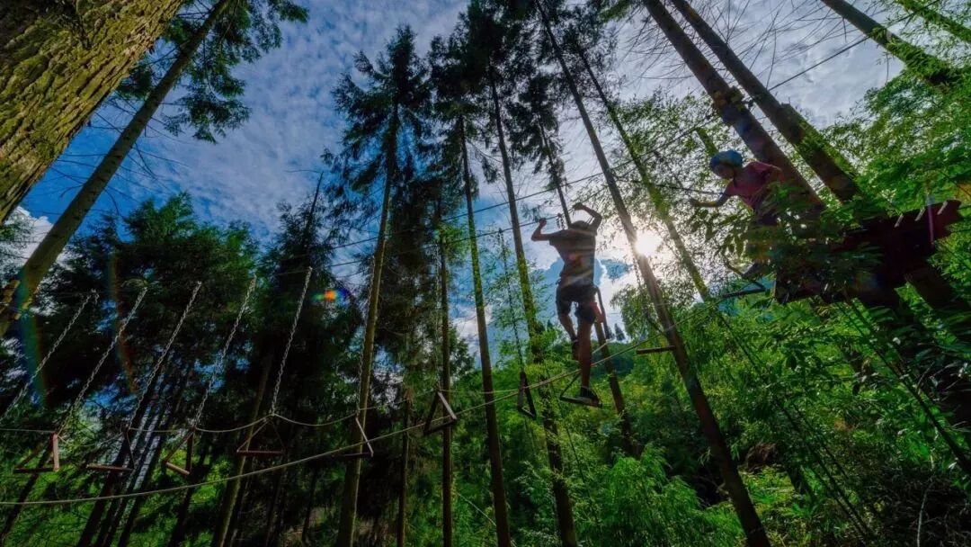 设置有秋千,吊环,平衡桥,梅花桩等十多道关卡