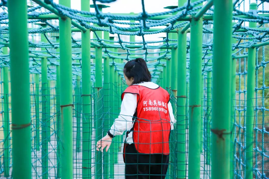 罗曼罗兰说:世界上只有一种真正的英雄主义,那就是在认识生活的真相后依然热爱生活。所谓的勇敢,就是你明明很怕,却依然要坚持去做。一条短短的“勇者之路”惊心动魄,孩子们需要攀爬,需要匍匐前行,需要脚踩着摇摇欲坠的网绳到达终点。许多孩子看着高高的网,忧心忡忡怕自己做不到。可是身边的同伴却牢牢握住她的手,告诉她: