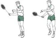 发平高球时,动作过程大致与发高远球相同,只是在击球的一刹那,前臂加速带动手腕向前上方挥动,拍面要向前上方倾斜,以向前用力为主。