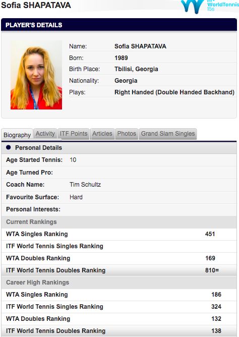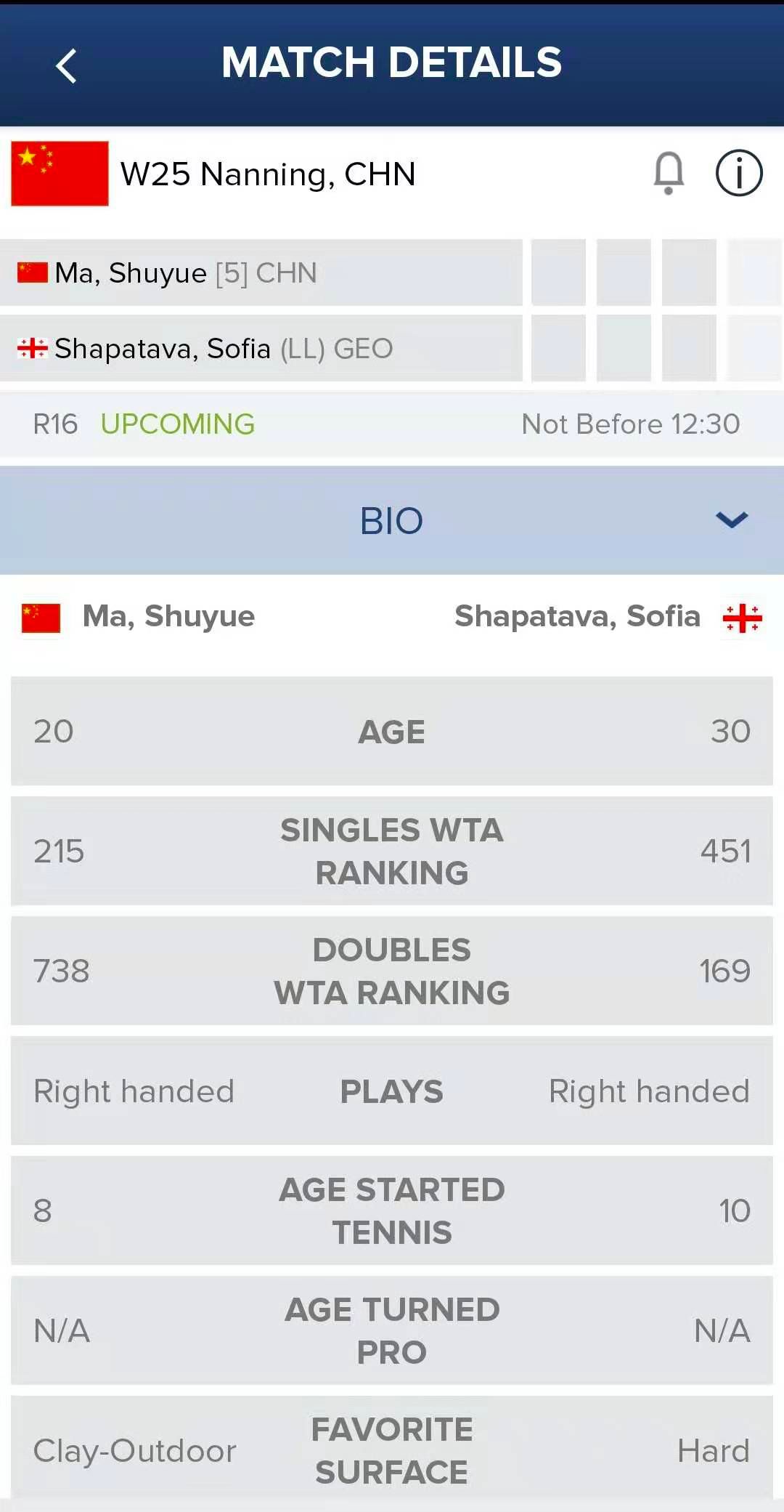 明日将进行单打次轮比赛,马姝玥的对手是格鲁吉亚选手Sofia SHAPATVA,对手出生于1989年,目前WTA451位。