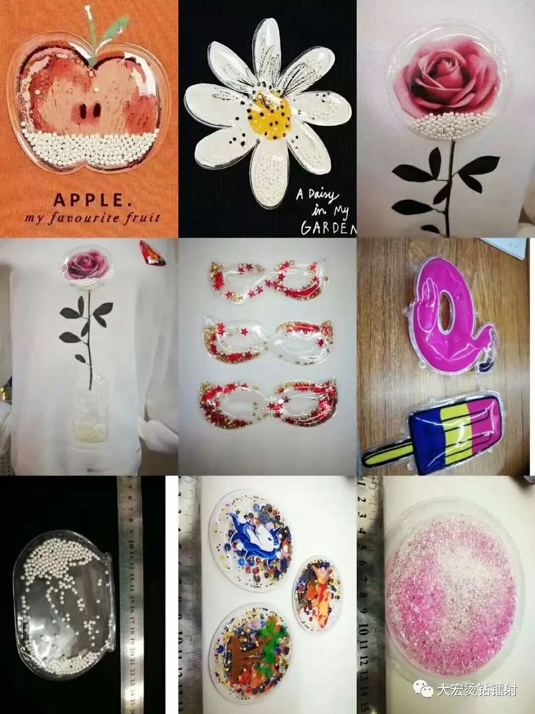 烫图烫钻、镭射珠片、鱼鳞镭射、数码镭射、葱粉、植绒各种进口环保烫钻、皮标、滴塑注塑、防伪标、TPU烫标