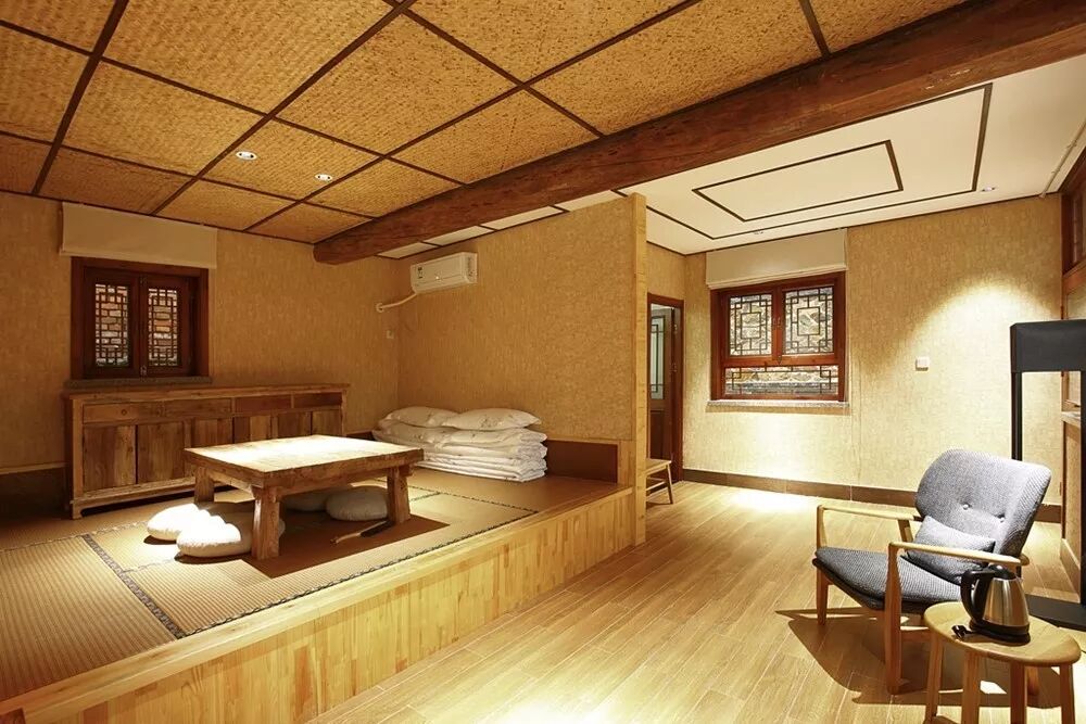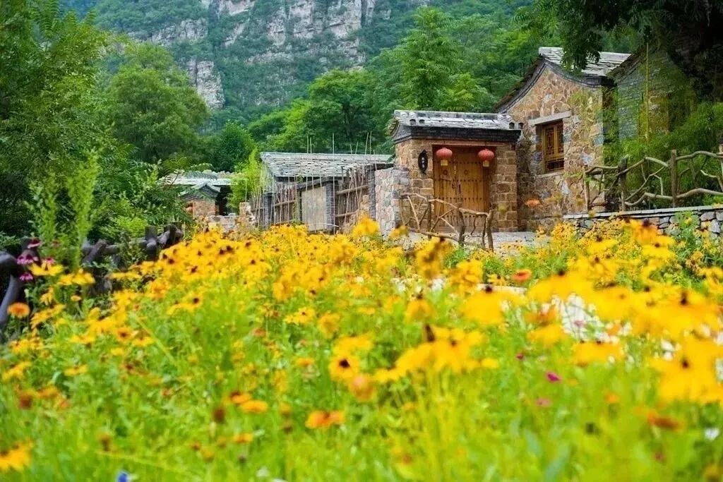 依山枕水的桃叶谷,这里石墙木门格子窗,一砖一瓦里都透着“采菊东篱下”的田园范儿,室内大炕、上下床、大床各式各样,欣赏风光的同时还能享受私家庭院的静谧。