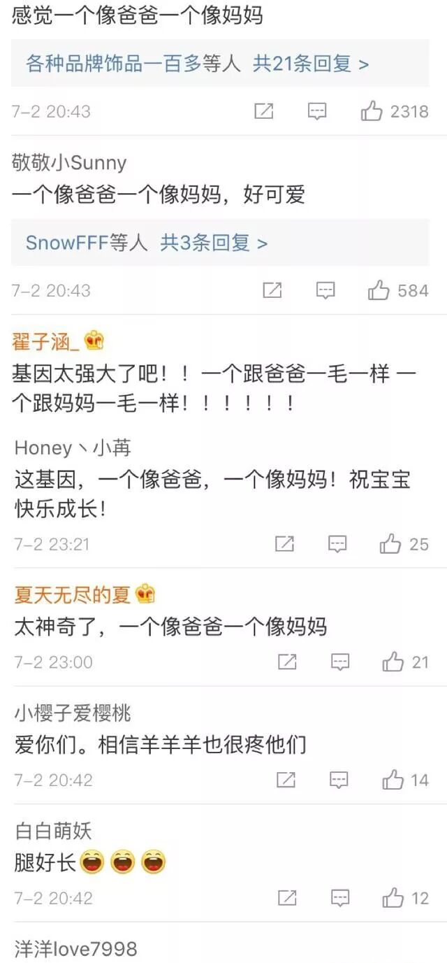 虽说杨威的两个女儿是双胞胎,但是长相却是很不同的。一个和杨威长得非常相似,而另外一个则酷似杨云。这可能就是一个像爸爸,一个像妈妈吧。