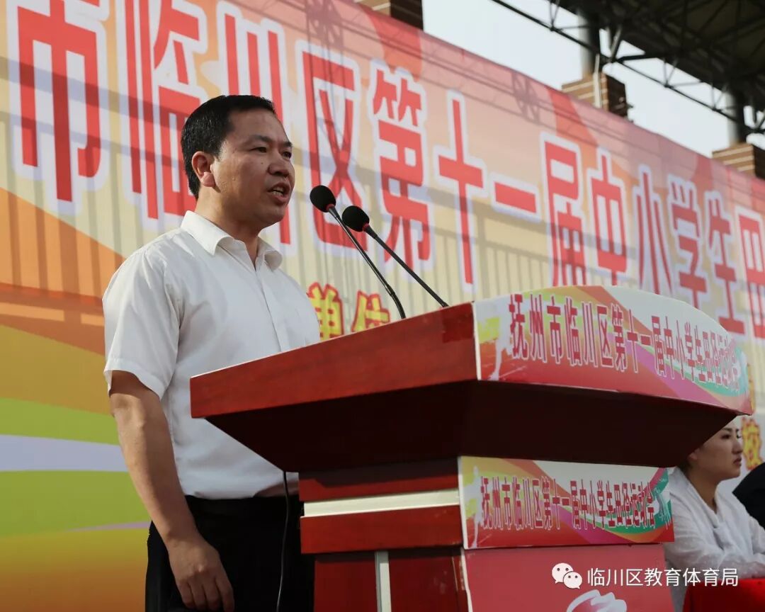 帅蓉晖在致辞中首先代表区委、区政府对运动会的开幕表示热烈祝贺。向参与这次盛会筹备工作的全体人员和裁判员,各学校代表队教练员、运动员表示诚挚的慰问,向长期以来关心、支持临川教育体育事业发展的社会各界人士表示衷心的感谢。