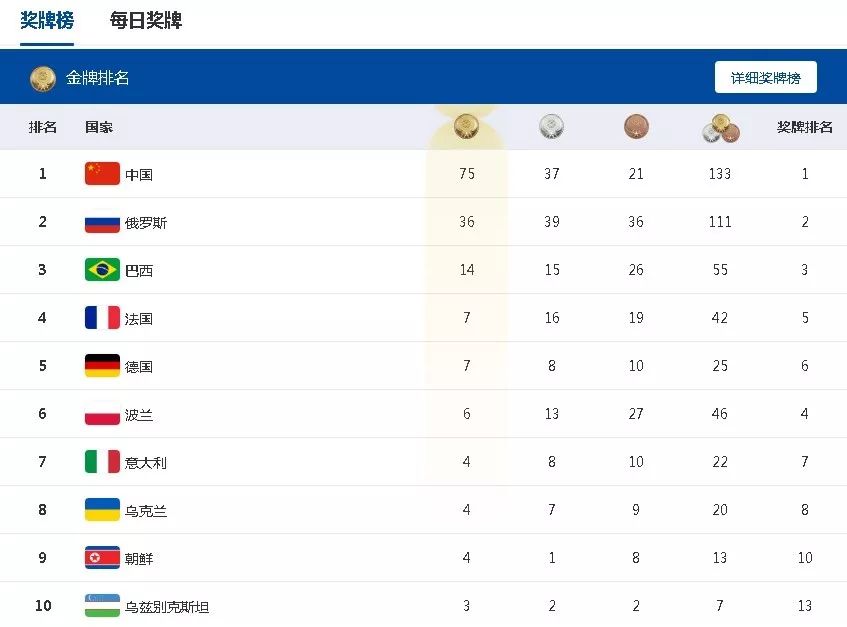 最新奖牌榜来了!