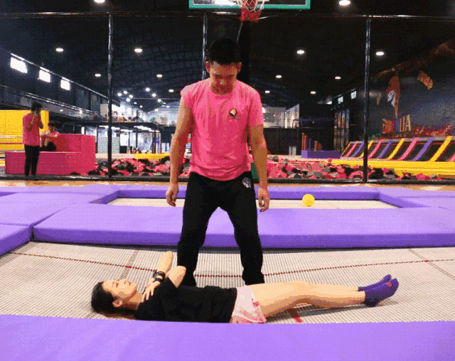 4、身体失去平衡时绝对不要用手撑网,宁愿倒下,注意要双手抱胸前,哪怕被弹出去也不要手撑。”另外,在练习时要小心腰部受伤,蹦床运动员损伤最多的就是腰和脚腕,因为下落时的冲击力很大,所以未经专业训练的人练蹦床弹起高度不能太高。