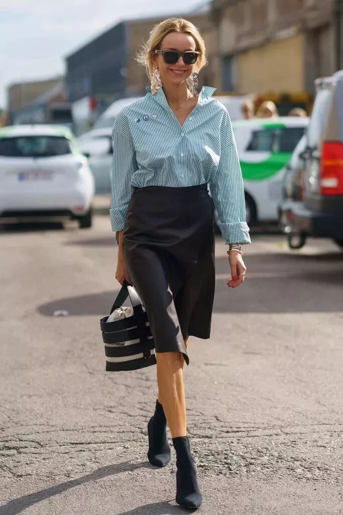 比起袜靴,窄靴筒的皮靴更加实用。经典不过时的时髦公式:小黑靴+牛仔裤