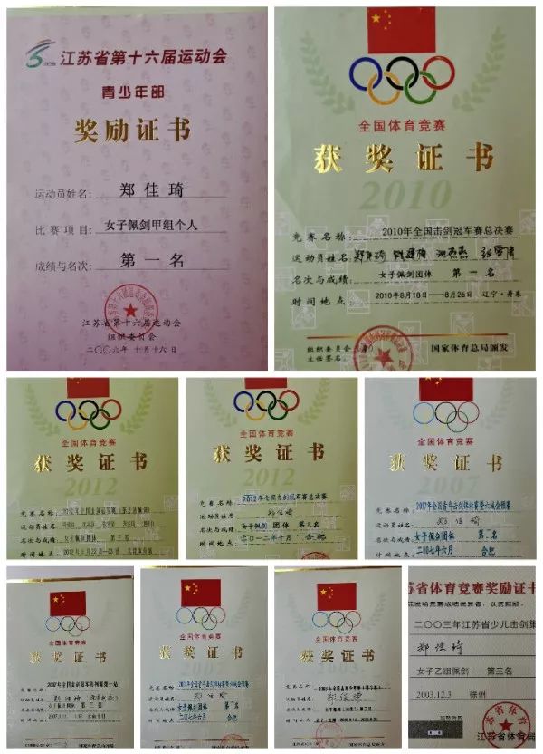 19年的时间里,郑佳琦获得的奖项可以用“不胜枚举”来形容,包括江苏省第十五届运动会青少年女子佩剑乙组团体冠军、江苏省第十六届运动会青少年女子佩剑甲组个人赛冠军、2010年全国击剑冠军赛总决赛女子佩剑团体冠军等等,丰富的比赛经历,带给她丰富的经验,也让郑佳琦热爱击剑的心越来越坚定。