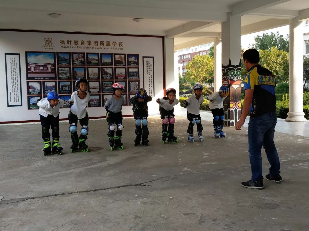 荆州枫叶国际学校轮滑课程教练为国家一、二级执证教练员,在“安全第一”的情况下,严谨、有序的开展轮滑社团课。