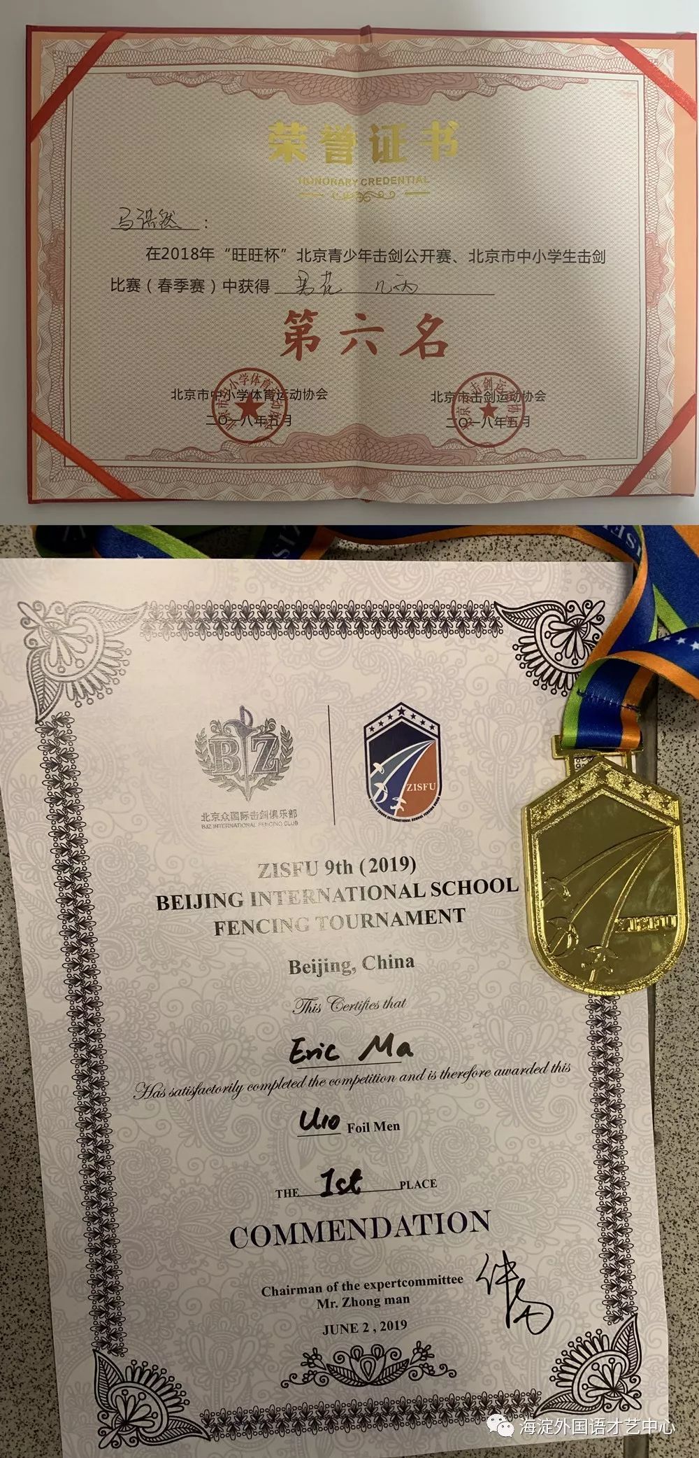 ▲2019年北京国际学校击剑联赛U10男子花剑个人冠军
