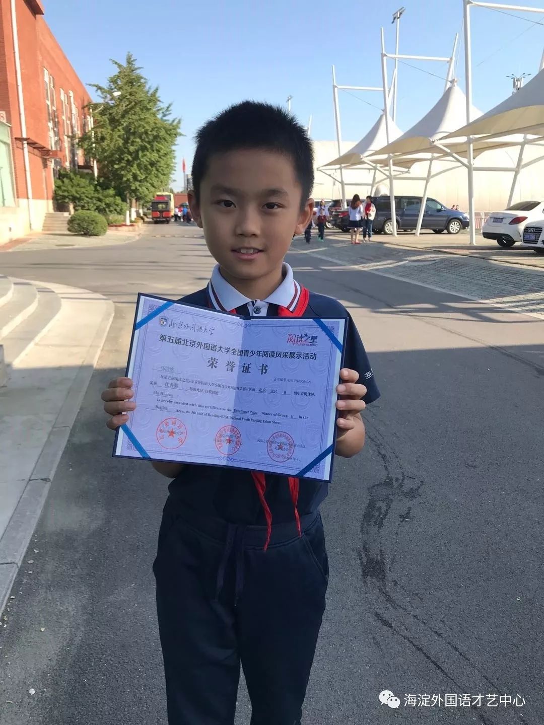 ▲2019年第五届北京外国语大学全国青少年阅读风采展示活动北京区B组优秀奖