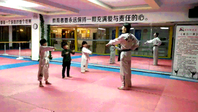 穿上道服,扎上腰带,赤脚在跆拳道训练场的底板上!正踢、横踢、冲拳、马步……一招一式,一脚一拳,永记于心。
