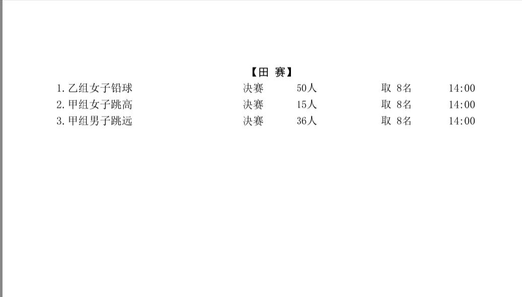 运动会持续两天,分为四个午段。各午段有不同的比赛。