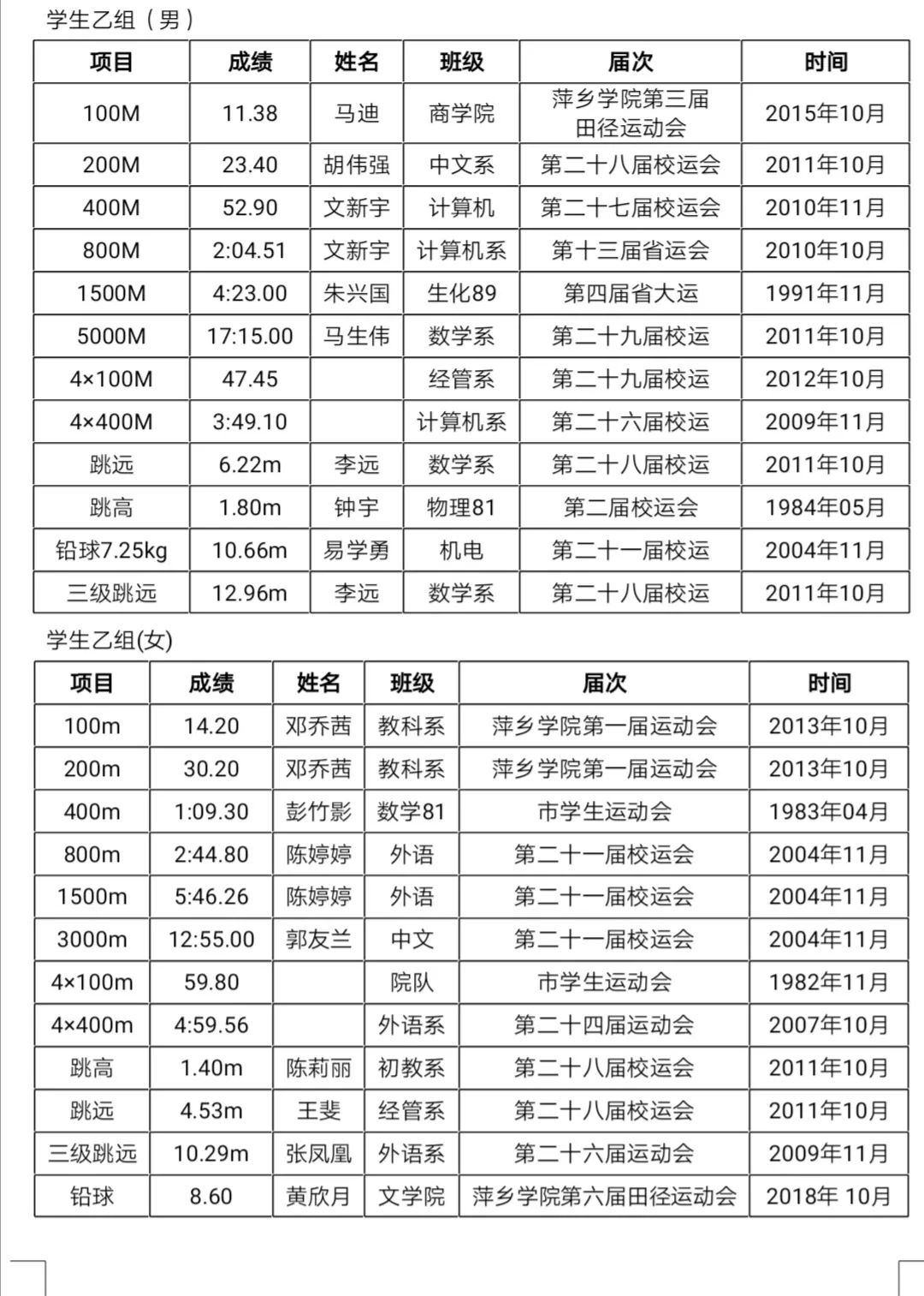 运动会最燃的当然是打破纪录了,让我们来看看各项目的记录,打破它制造燃点吧!
