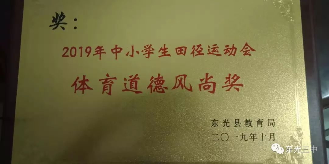 10月20-21日,在我县第一中学举行了2019年东光县中小学生田径运动会,经过两天紧张激烈的角逐,圆满完成了各项赛事,我校田径队喜获全县第二名,获得158分,共打破七项全县记录,并以良好的赛风赛纪荣获得体育道德风尚奖。这是在我校办学思想指导下,提升学生核心素养的又一硕果。