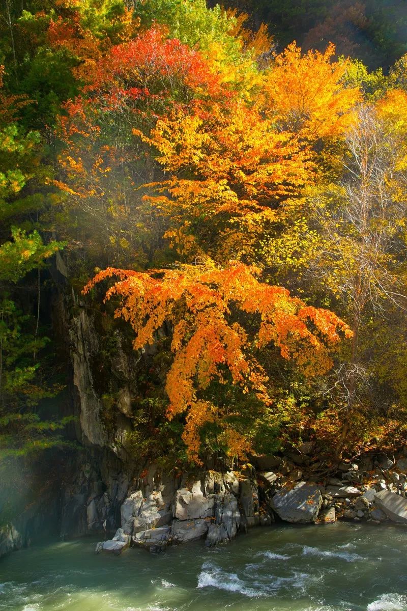 站在高处往下望去,你会看到,延绵的山峦间,百余公里的红叶如火焰般耀眼,千树万树姹紫嫣红,与蓝天、白云、山川、河流相互映照...