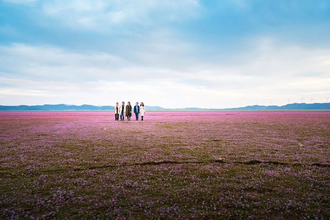但很多人不知道,鄱阳湖随着枯水期的到来,却出现了一大片粉色花海。
